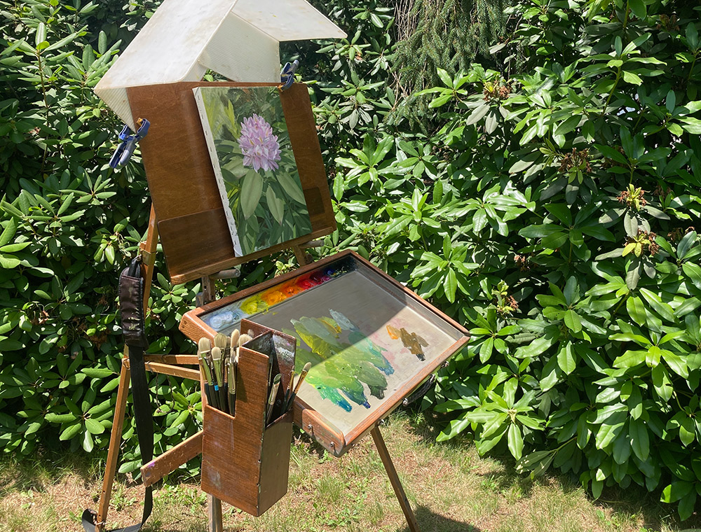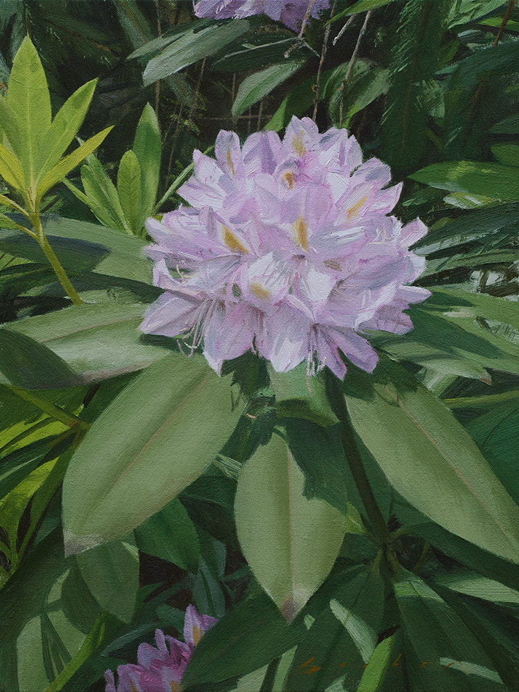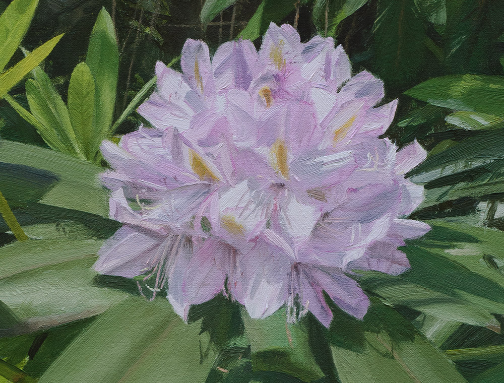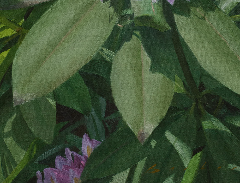 Here's a good depiction of my "Flowers first, leaves later" process. It also shows why I wasn't able to complete this piece outside. If you know where to look, you can see that the baby green new leaves from the upper left have grown over the several days into their adult phase. This turned out to be what the "just in case" snapshots were for : >) |